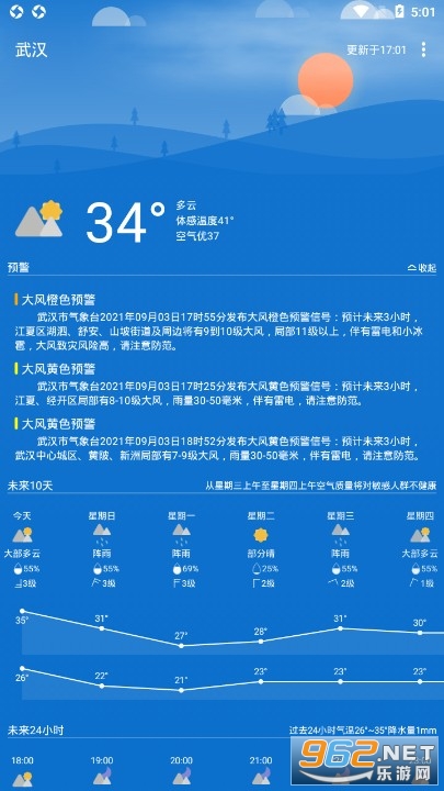 《Holi天气安卓最新版本》是一款拥有暖心的天气展示画面,平稳的天气过度动画。 太阳、云朵、流星、风车、秋千、孩子...... 如果你是一个追求更好体验的人儿,你会爱上Holi。