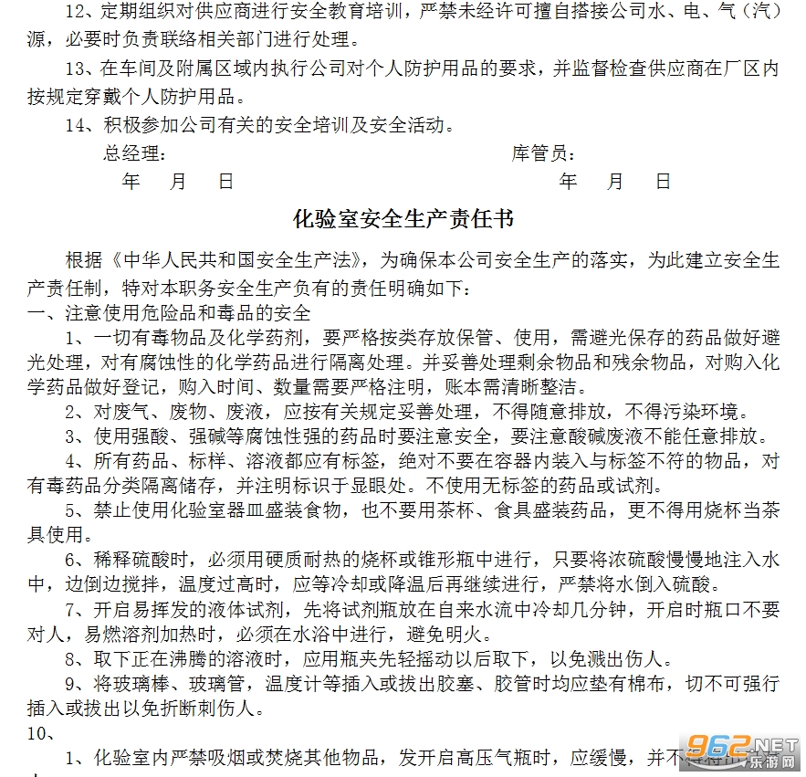 9、教育并督促员工按各岗位工种的特点穿戴好个人防护用品,有尘毒危害的要佩戴防护口罩或防毒面具,生产区域禁止吸烟,生产场所禁止吃食物;督促做好生产区域的环境清洁工作。