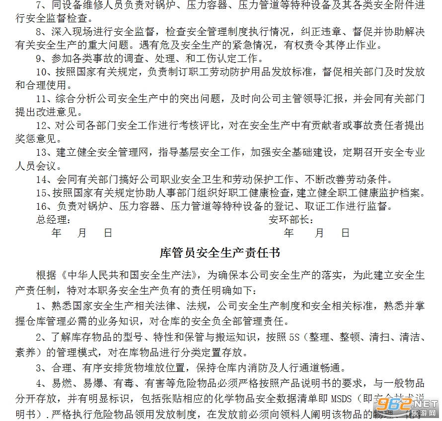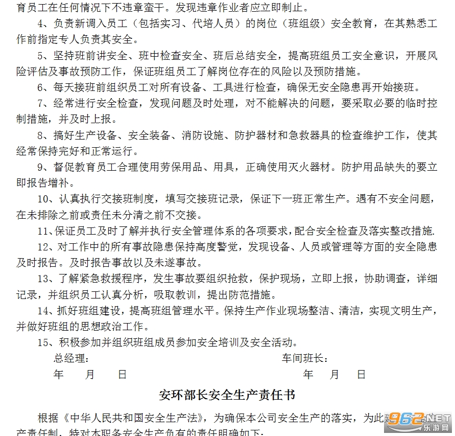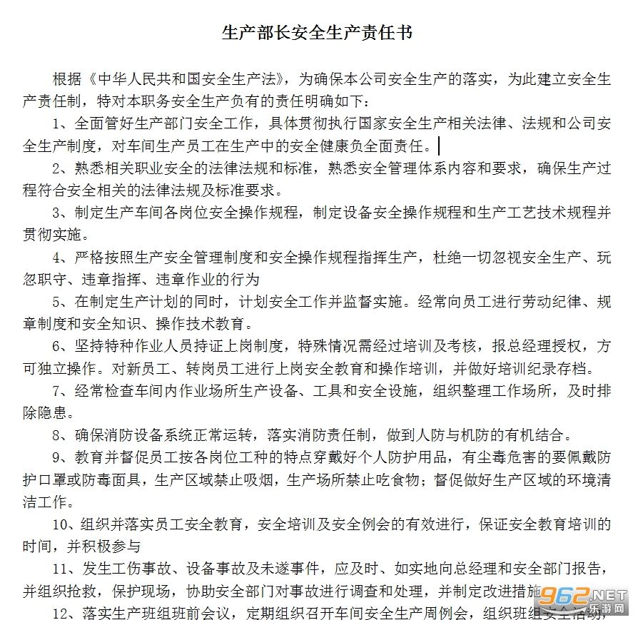 1、全面管好生产部门安全工作,具体贯彻执行国家安全生产相关法律、法规和公司安全生产制度,对车间生产员工在生产中的安全健康负全面责任。