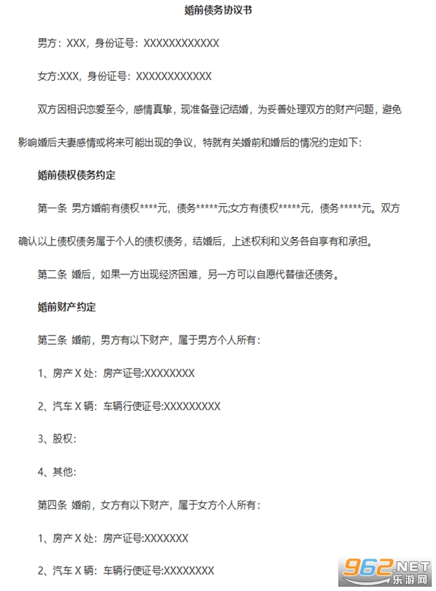 婚前债务协议书
