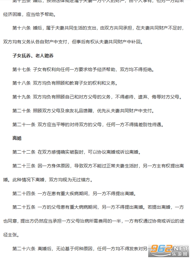 第十九条 双方均负有照顾自己和对方父母的义务,不得虐待、遗弃、侮辱对方父母。