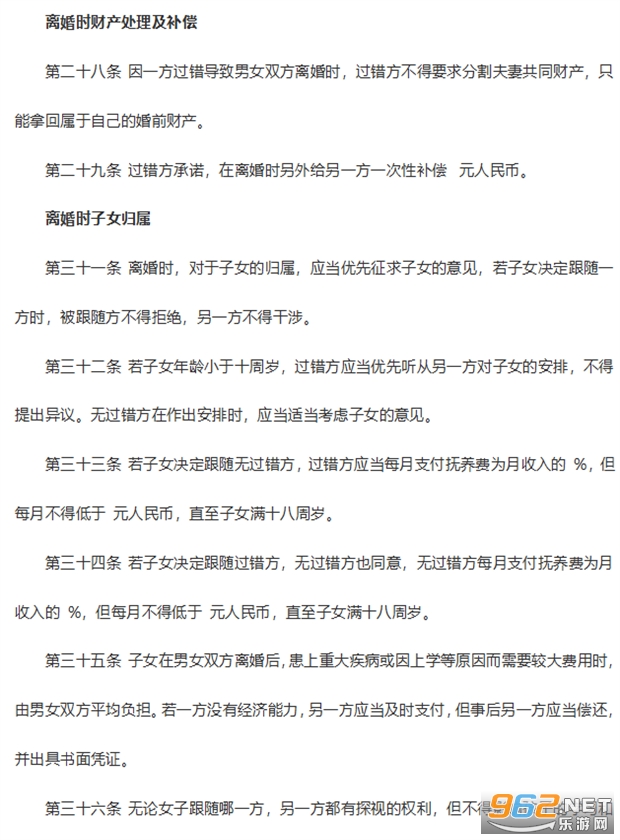 第二十八条 因一方过错导致男女双方离婚时,过错方不得要求分割夫妻共同财产,只能拿回属于自己的婚前财产。