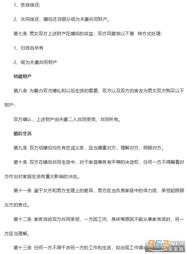 第九条 双方结婚后均负有忠诚义务,应当尊重对方,理解对方,照顾对方。