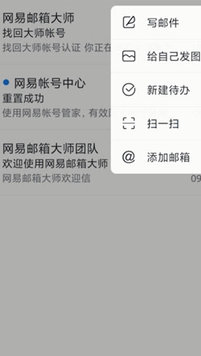 2.在软件中,还为用户提供了写邮件、给自己发图、新建待办、扫一扫、添加邮箱等等的功能,用户可以根据自身的需要,对于各种的功能进行选择使用。