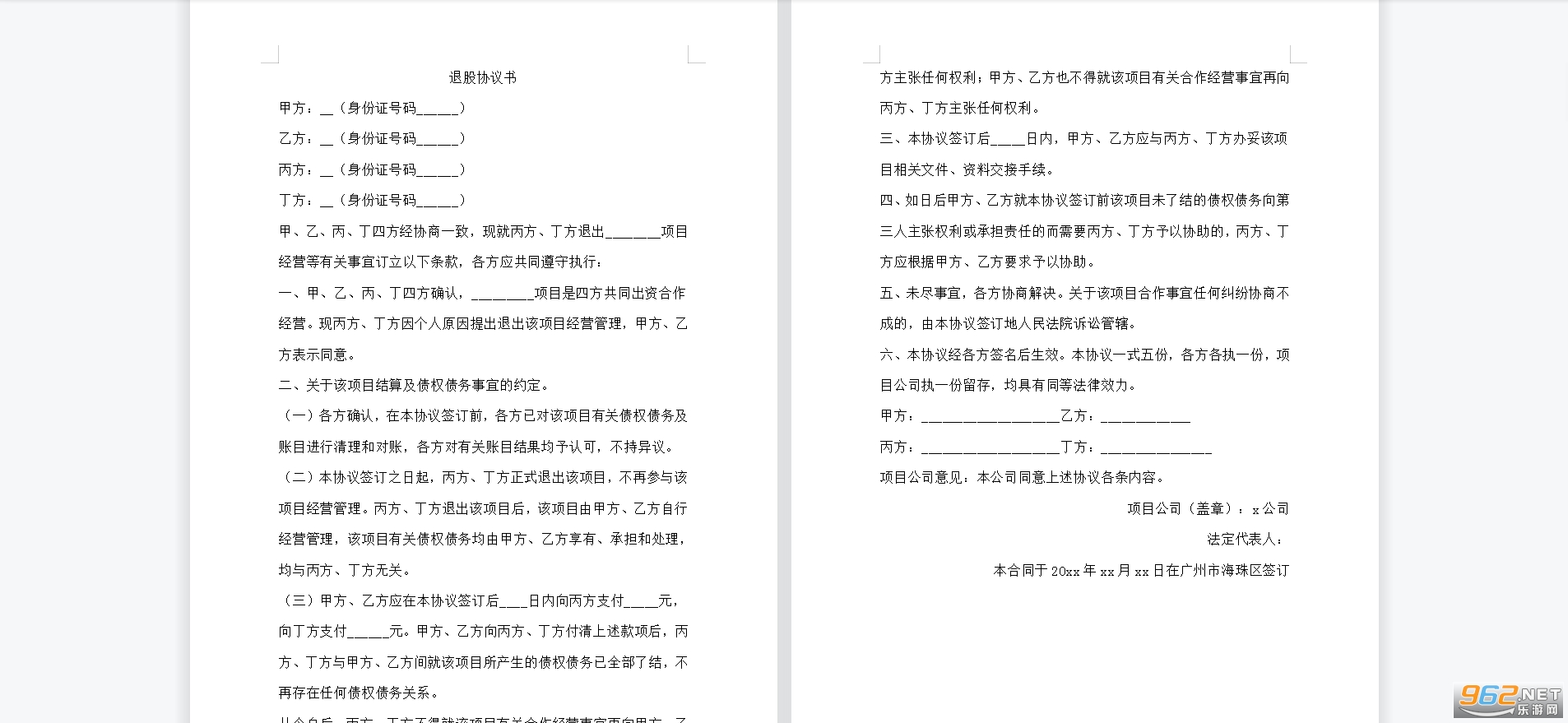 《退股协议书》是指在公司存续期间,股东因为各种原因想要退股而签订的协议文书,一般包括所有股东的基本信息,关于项目结算以及债权债务事宜的相关约定,资料交接的时间,异议争端解决的方式等等,小编为大家带来了五份退股协议书,需要的话就来看看吧!