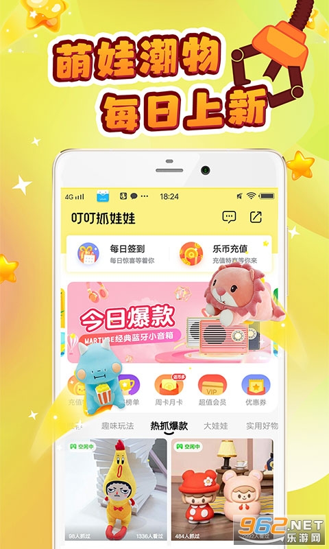 《叮叮抓娃娃App安卓版》是一款轻松有趣的线上手机抓娃娃软件,用户可以轻松点击选择不同的娃娃,无需排队即可进行抓取,更有大神直播抓娃娃技巧,给你带来更多有趣的电玩冒险,这里有各种可爱的娃娃,一旦抓取一键包邮,趣味多多。