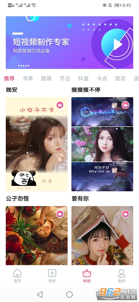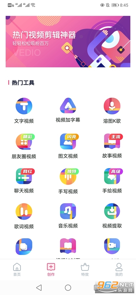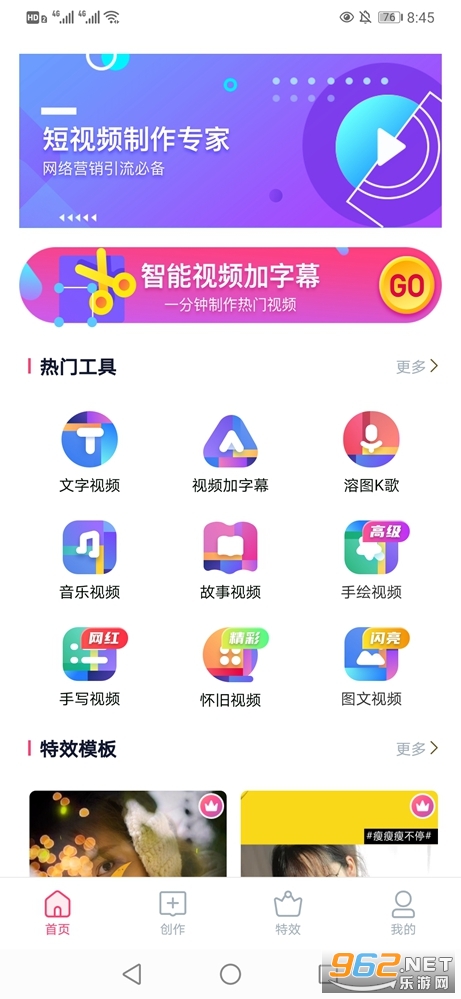 《特效视频制作大师去广告版》是一款为朋友们打造的短视频制作工具,现在很多的朋友都喜欢玩抖音、快速等,可以自己来制作短视频发布精彩的作品,特效视频制作大师功能强大,有着众多实用的功能可以使用,还有着大量的模板可以自由选择,让你轻松制作出属于自己的短视频。