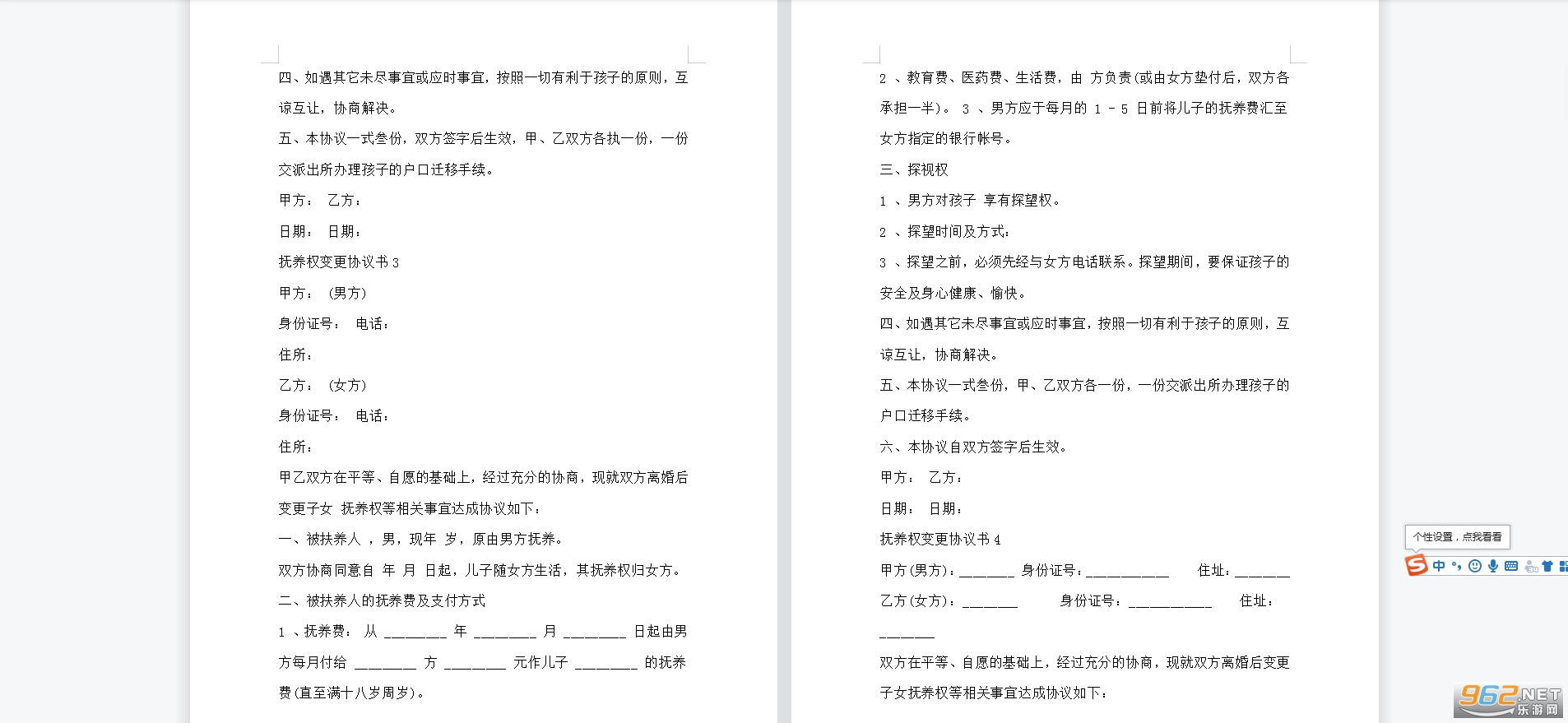 夫妻双方在办理离婚的时候,需要妥善处理还子女抚养权的问题,如果后期需要进行抚养权变更的话,可以通过签订抚养权变更协议书来明确双方的责任和义务,抚养权变更协议书里面一般包括,男方和女方的基本信息,被抚养人的抚养费及支付方式,探视权等等问题的约定,小编为大家整理了几份模板,需要的话赶紧来看看!