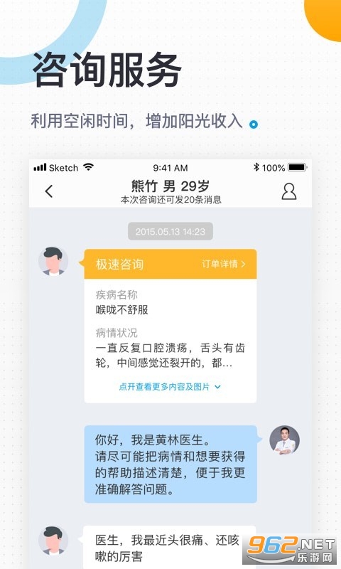咨询服务为患者进行线上答疑解惑,增加阳光经济收益;