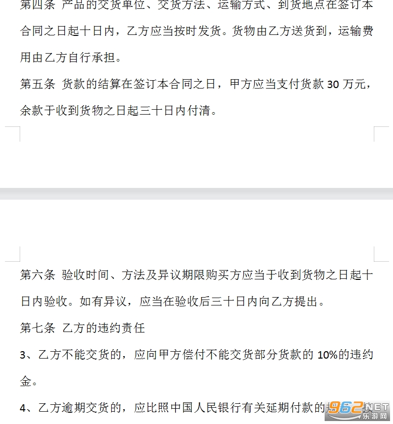 第五条 货款的结算在签订本合同之日,甲方应当支付货款30万元,余款于收到货物之日起三十日内付清。