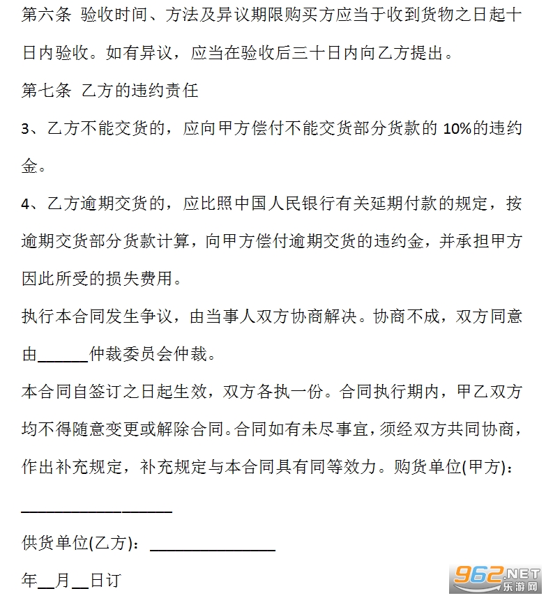 供货单位:________________________&8194;以下简称乙方。