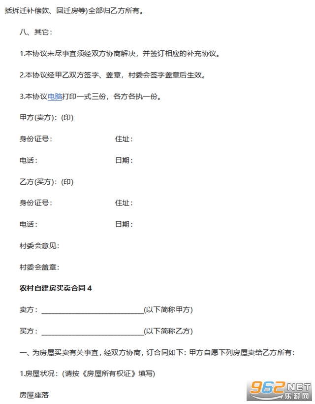 七、本合同一式四份,甲、乙双方及税务部门各一份,房管部门一份。