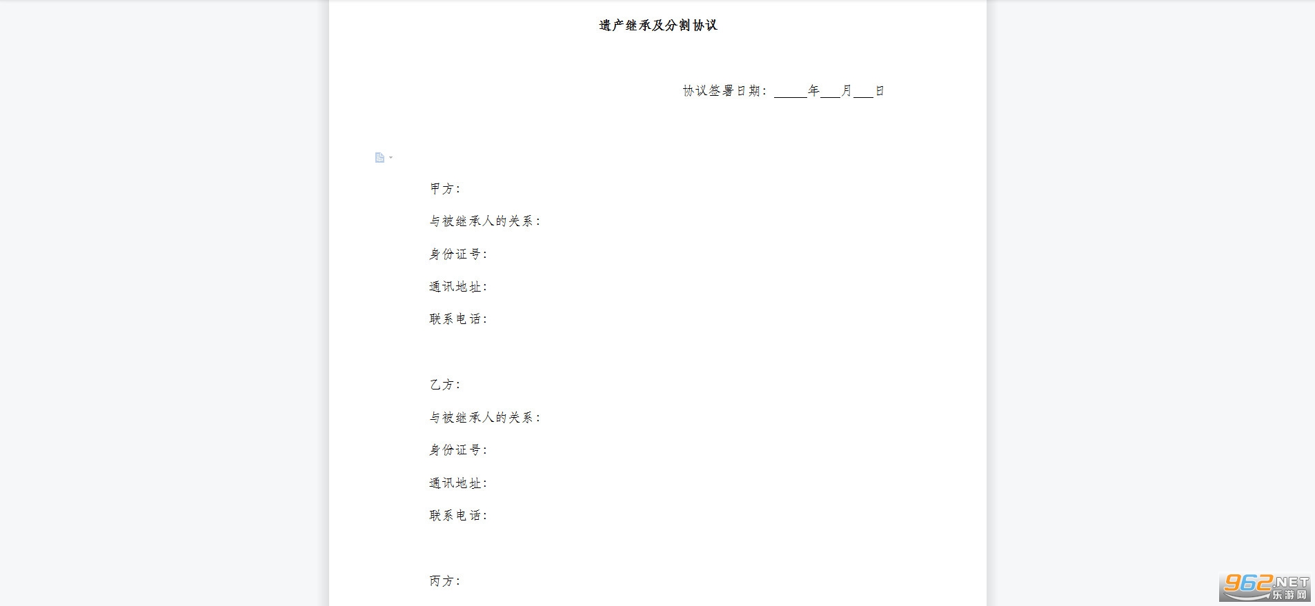 《遗产继承及分割协议》当被继承人去世以后协议将生效,被继承人的各种财产将分给不同的继承人,通过各种约定让活着的人能够过得更好,不过独生子女大概没有这种困扰,下面小编将带来遗产继承及分割协议模板。