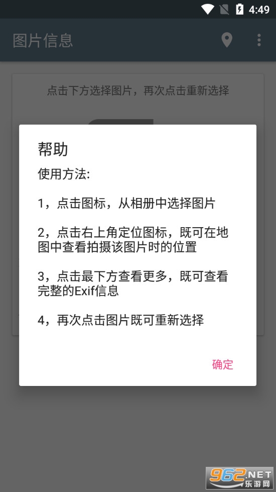 《图片信息查看器》是一款为朋友们打造的提取图片的详细信息的软件,有时候我们得到一张图片不知道这张图片的具体信息是什么,比如图片的修改时间、位置信息等,可以使用本款软件来一键提取,点击图标选择目标图片,注意需要是原图,然后就可以看到详细的Exif信息了。