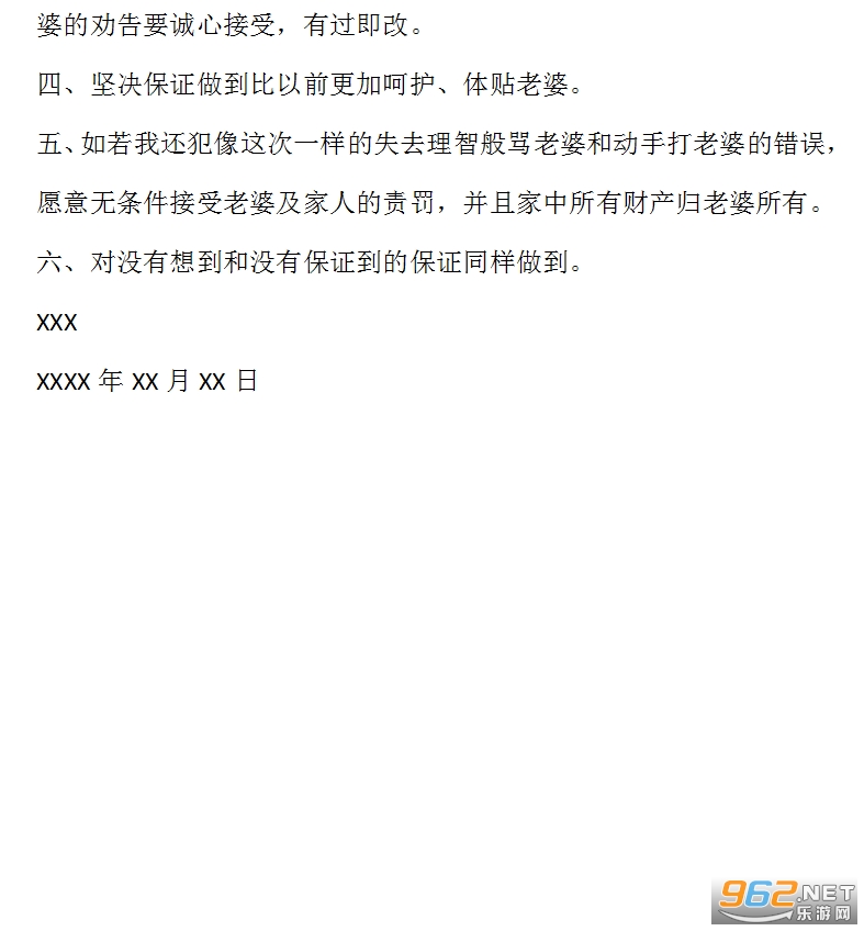 7老公保证坚决服从老婆的安排,老婆提出的任何事情尽量满足,不得推诿。