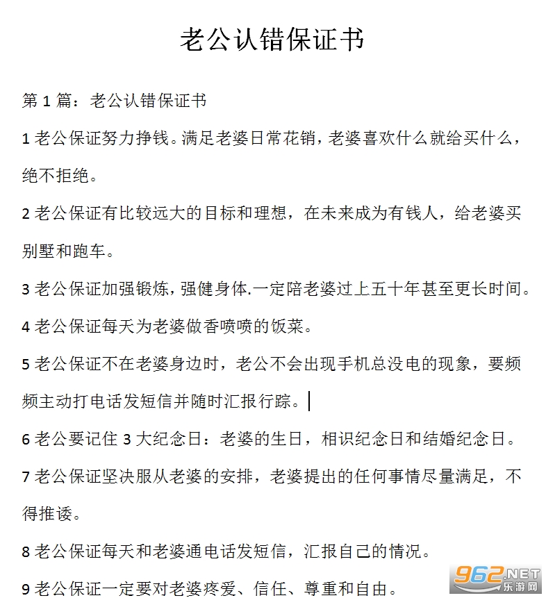 《老公认错保证书范本》是小编在网上收集到的两篇关于老公认错保证书的范本,范本写的都不错,第一篇比较的油腻第二篇比较的正规,各位老公根据自己的情况进行选择参考,写的时候要付出真心哦,有兴趣可以看看哦。