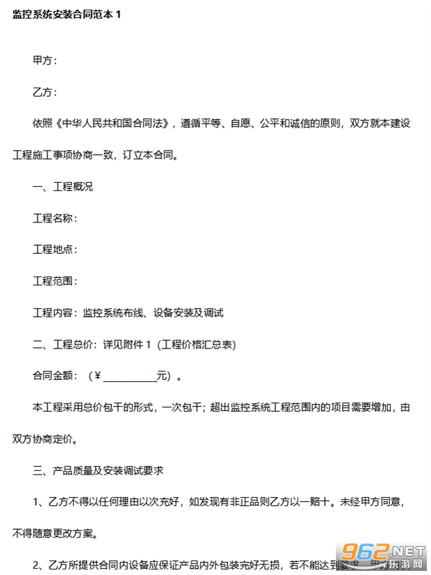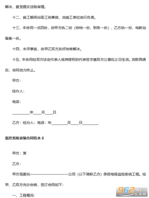 《监控安装合同书范本》中为大家带来简单的2份监控系统安装合同范本,目前有很多私人以及公司承接各种监控安装项目,确定进行安装之前一定要签署有效的合同哦。快来下载吧!