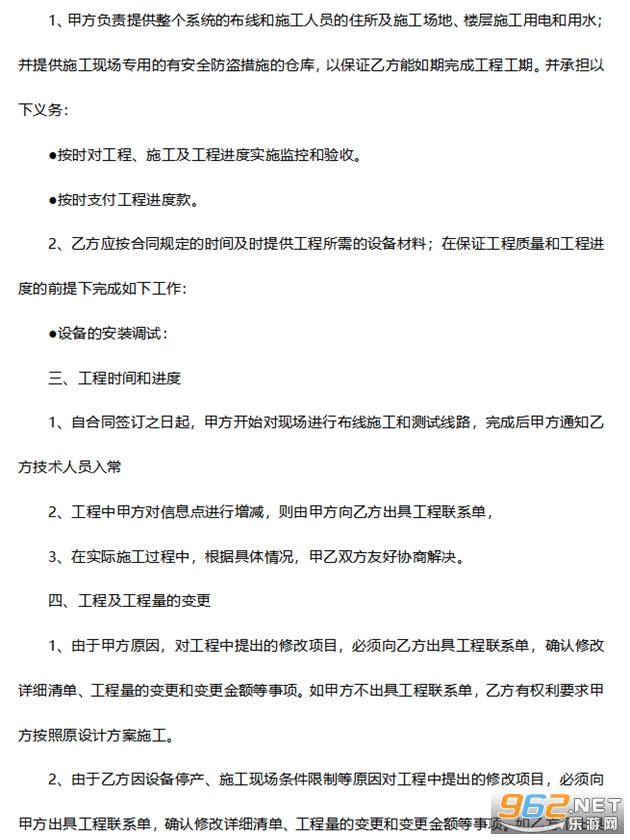 2、乙方应按合同规定的时间及时提供工程所需的设备材料;在保证工程质量和工程进度的前提下完成如下工作: