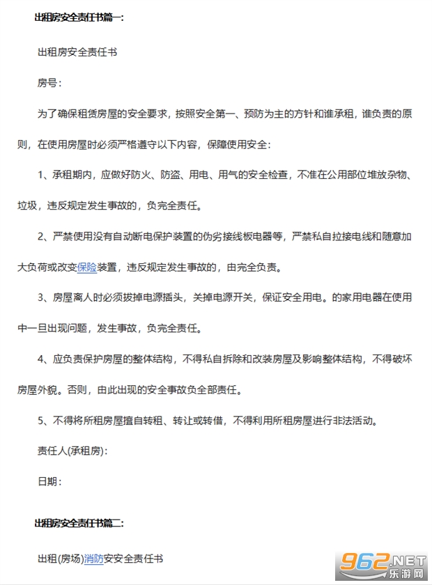 出具有效的《出租房安全责任书》对于房东来说是一项必须要履行的责任,提醒你的用户注意用火用电等消防安全,明确各种责任事宜。《出租房安全责任书》为大家带来3份出租房安全责任告知书模板,可以直接下载使用哦!