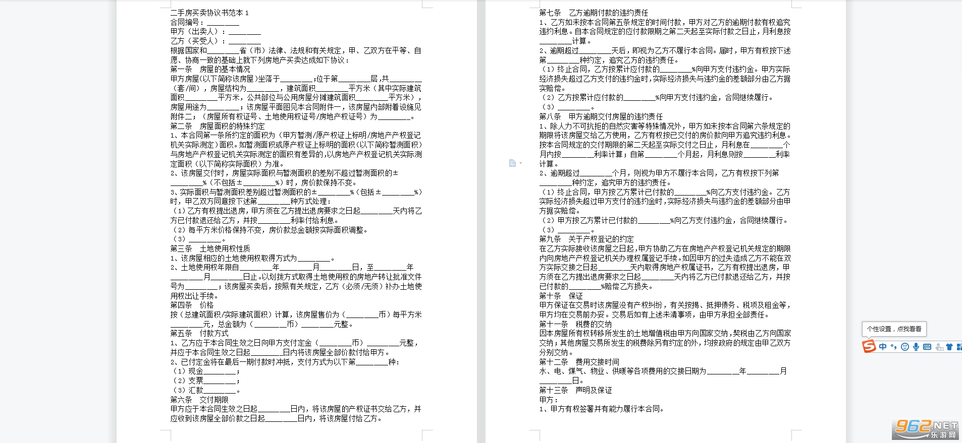 二手房买卖协议书范本1