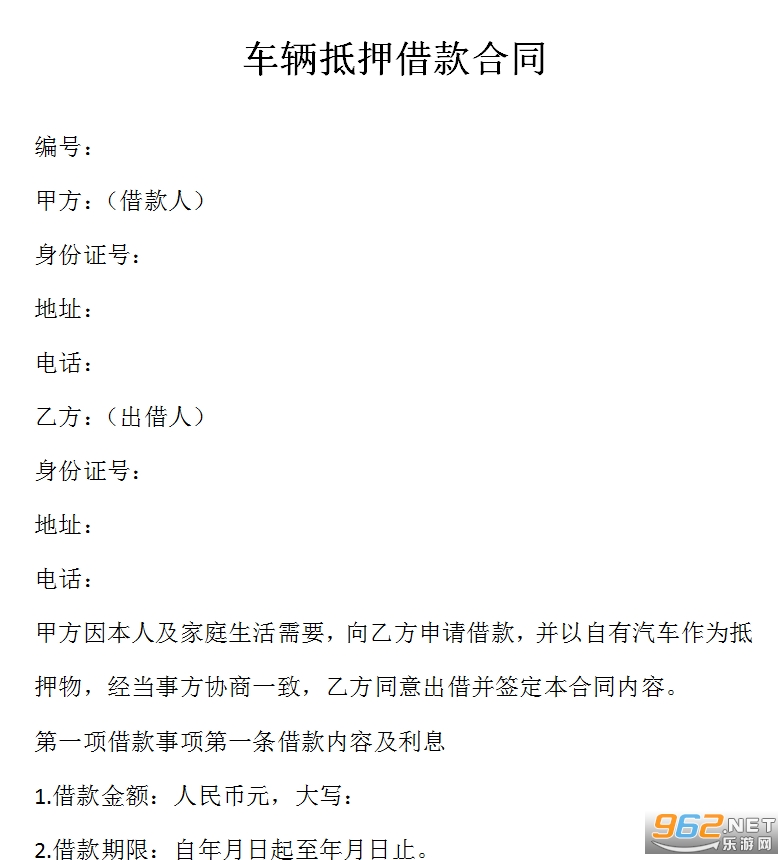 甲方因本人及家庭生活需要,向乙方申请借款,并以自有汽车作为抵押物,经当事方协商一致,乙方同意出借并签定本合同内容。