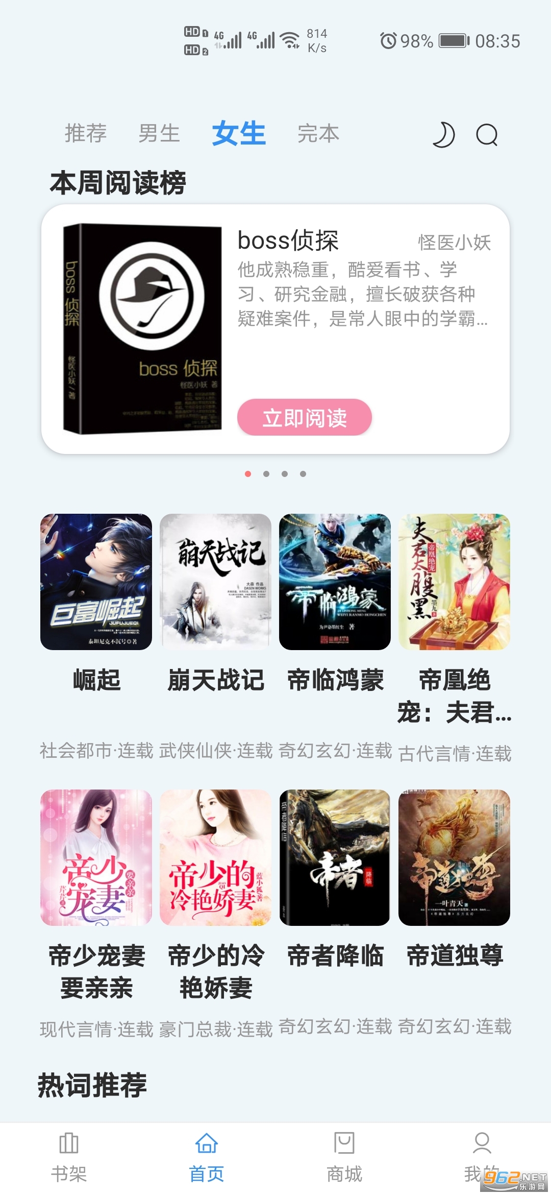 2.优质内容:大量完结、连载小说,出版小说内容品质达到最优;