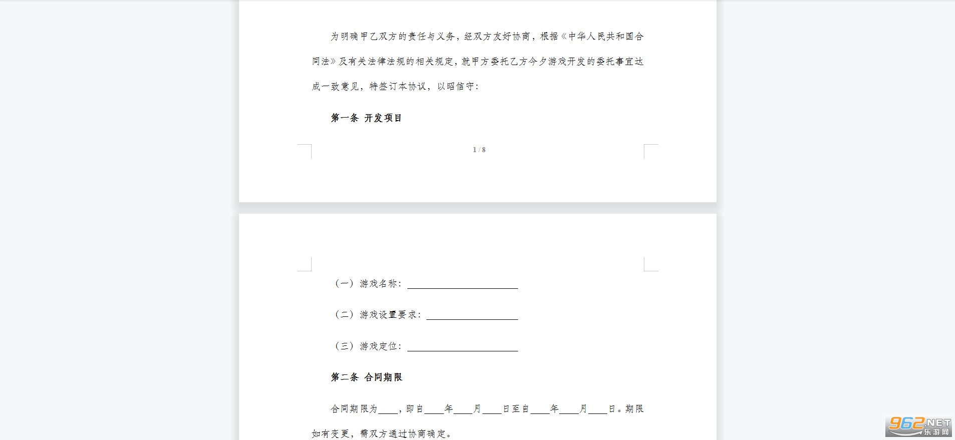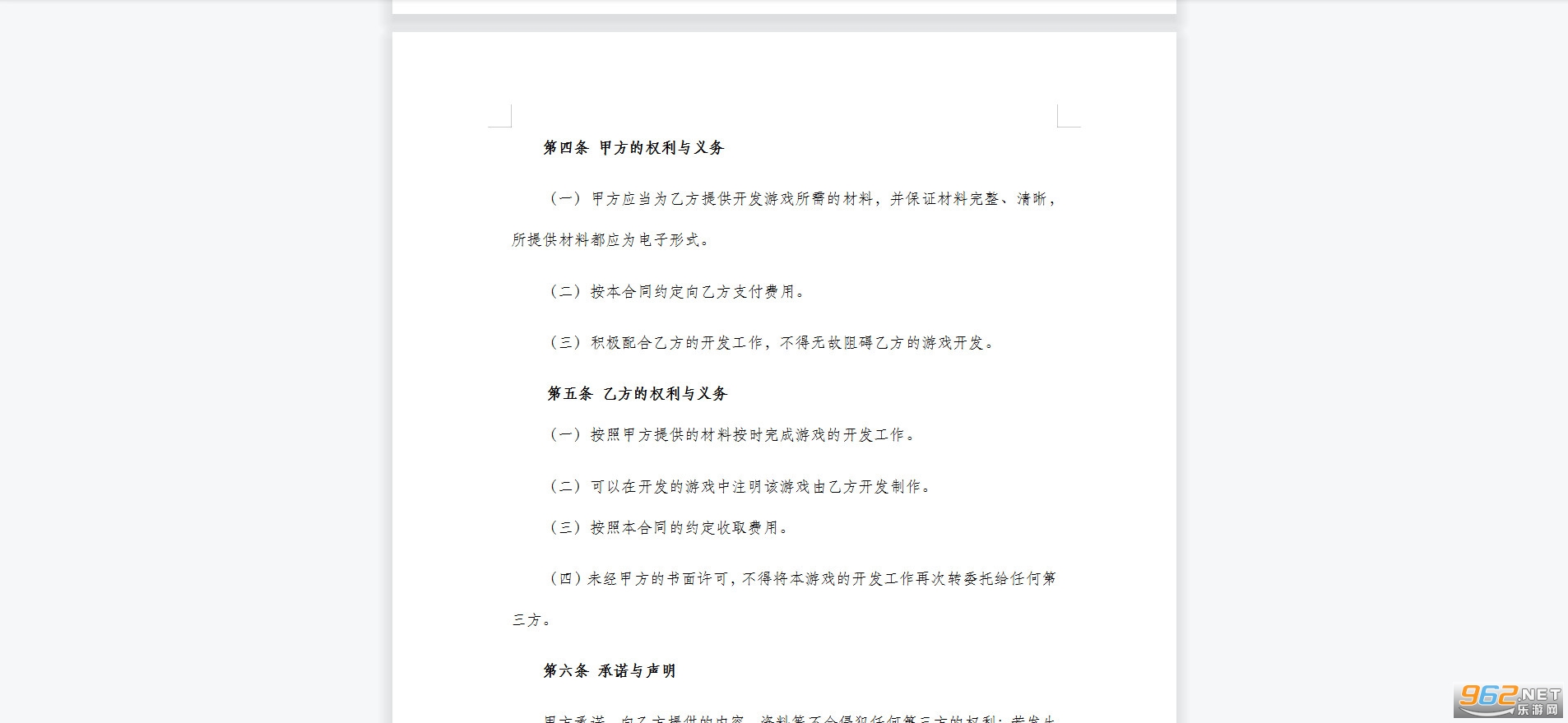(一)甲方应当为乙方提供开发游戏所需的材料,并保证材料完整、清晰,所提供材料都应为电子形式。