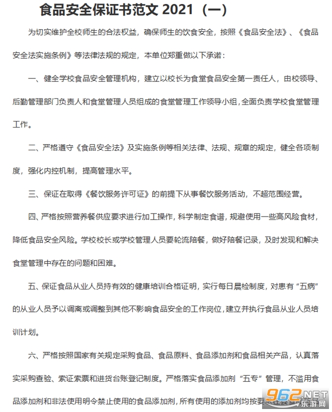 为切实维护全校师生的合法权益,确保师生的饮食安全,按照《食品安全法》、《食品安全法实施条例》等法律法规的规定,本单位郑重做以下承诺:
