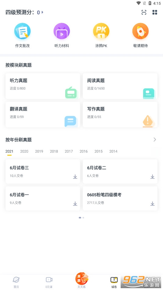 实用的英语学习软件,适用于考四六级的朋友,进入软件选择自己需要考试的等级然后进入软件会有着相应的学习资料推送,可以记单词、在线刷题、看教学视频等等,有需要的朋友可以下载试试。