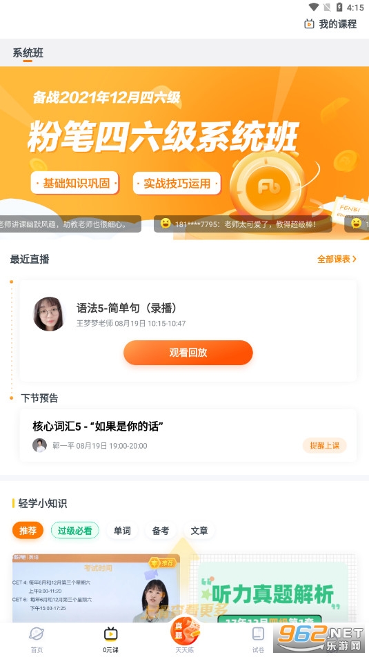 2、超多四六级课程:四六级免费公开课、四六级系统班、考前急救班等你来听,超20万考生都在这里备考四六级