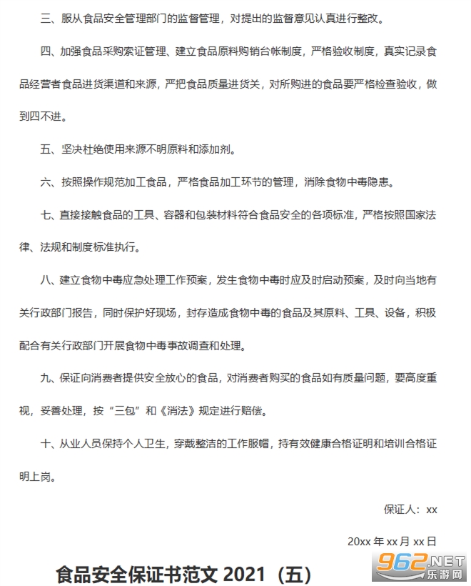 食品安全问题是非常需要重视的问题。《食品安全保证书》在一些学校幼儿园等集体性质的食堂是比较常见的,下面为大家带来5份食品安全保证书范文,大家可以自己进行参考,直接下载压缩包就可以得到饮食安全保证书范文文档了哦!