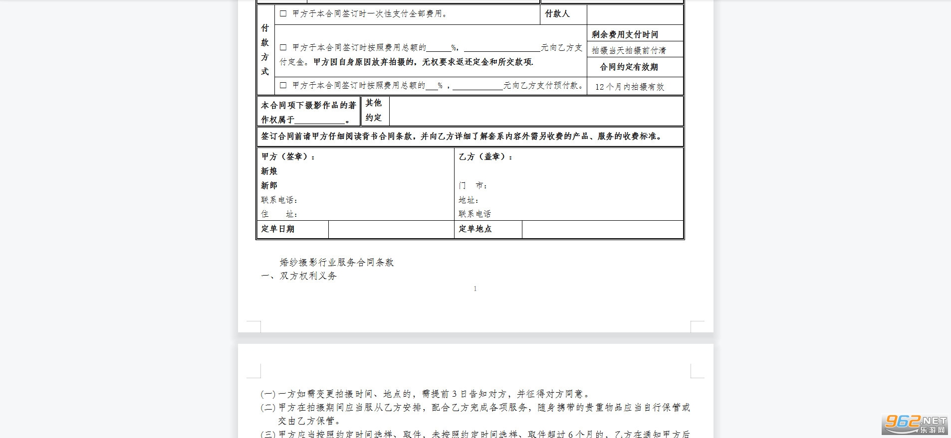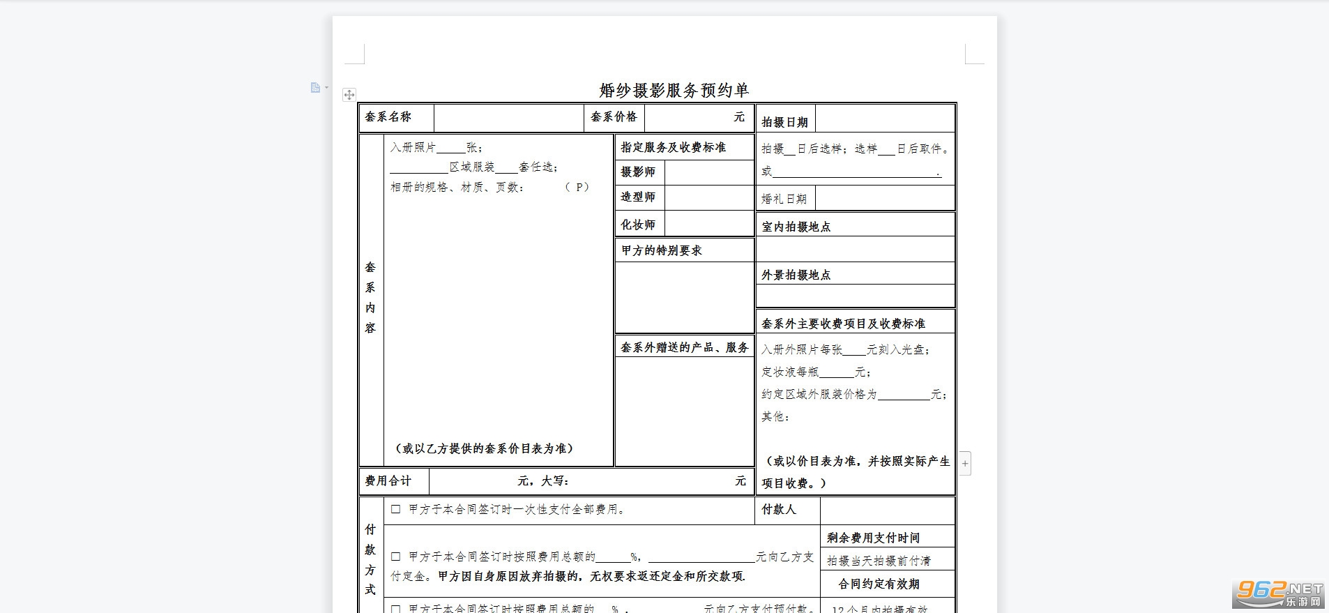 《婚纱摄影服务预约单 》婚纱照是结婚过程中的重要一环,在这里拍摄各种各样唯美的婚纱照,尝试不同的华丽服装,将这些美好甜蜜的画面定格下来,当然因为拍摄婚纱照出现各种问题的也有,所以一定要签好合同约定好各种事项。