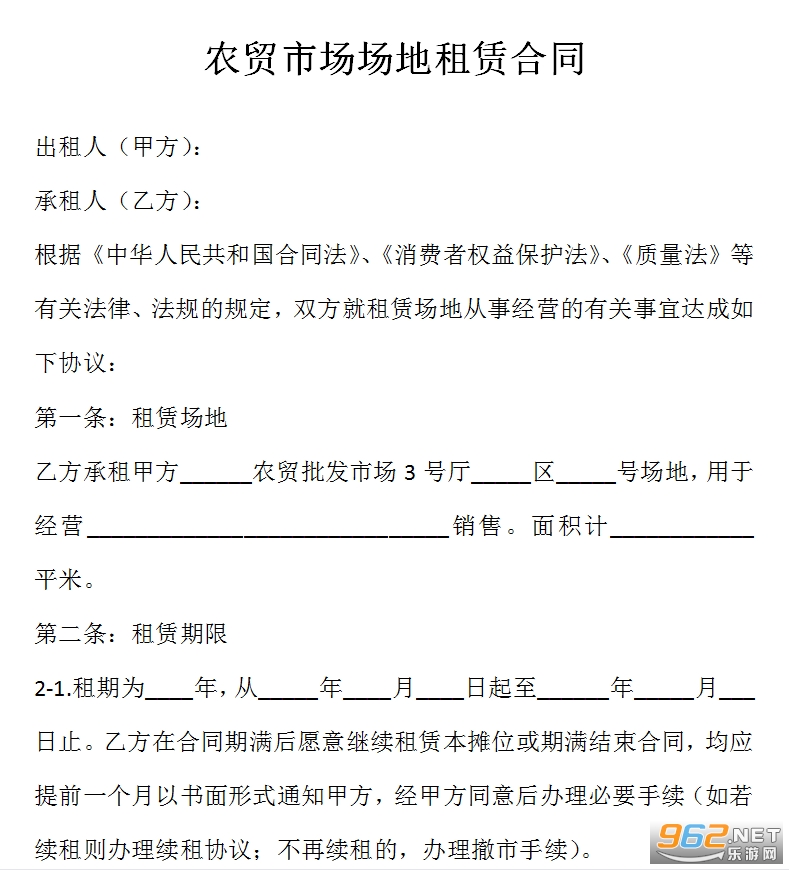 农贸市场场地租赁合同
