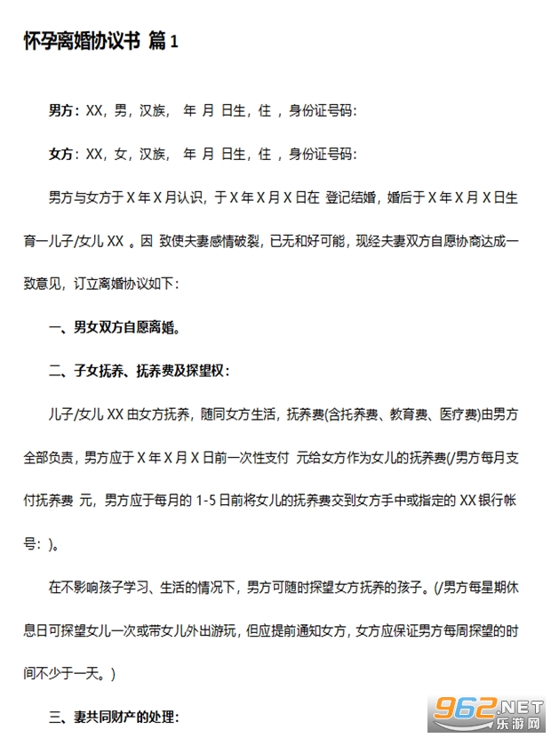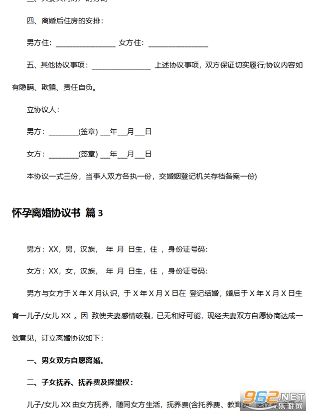《孕妇离婚协议书》是为有孩子以及孩子还未出生的夫妻双方提供的离婚协议书范本,协议书需要就夫妻双方的财产以及孩子的抚养等问题签署专门的协议。下面为大家带来3份孕妇离婚协议书范文写法,一起来看看吧!