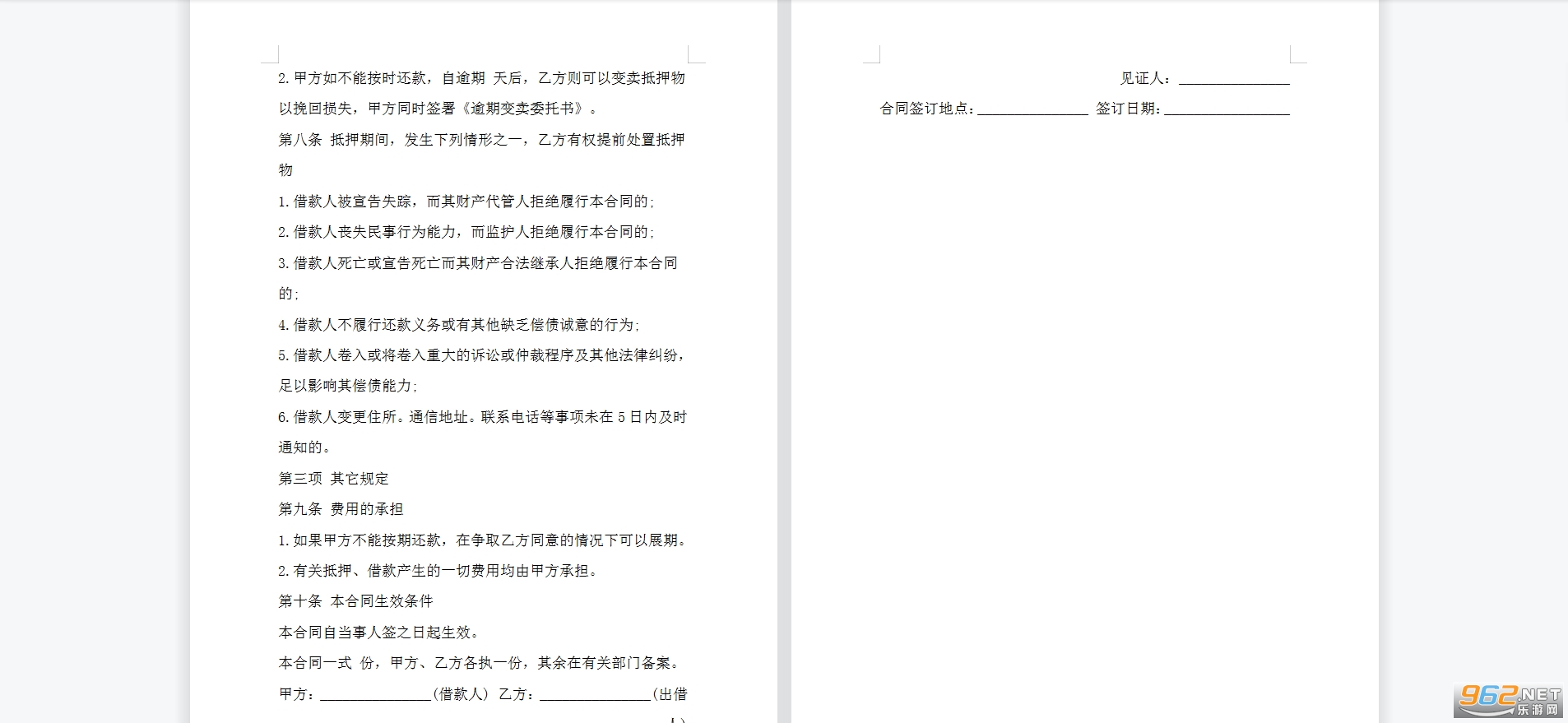 第八条、本合同在甲方还清借款本金、综合费用后,乙方将甲方提供的抵押物和证件等返还甲方。本合同自行终止。
