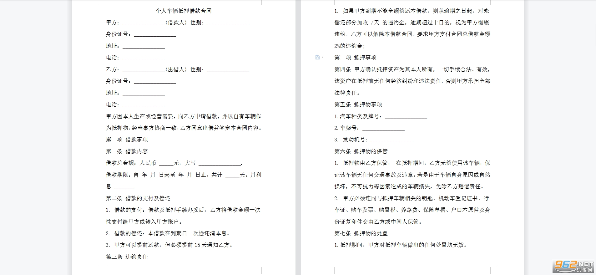 《车辆抵押合同》里面包括了抵押人和抵押权人,抵押物的名称,数量,抵押的期限,抵押款,抵押情况声明,双方的违约责任以及抵押物的处分方式等等。临时缺钱,周转不开,想要抵押个人车辆借款,那么车辆抵押合同怎么写合法呢?小编为大家带来了车辆抵押合同范本最新免费模板,大家可以根据自己的实际情况借鉴合同模板使用!