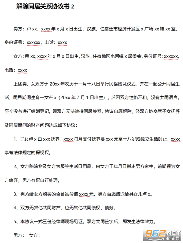 《解除同居关系协议书》为大家带来3份解除同居关系协议书范文写法,大家可以参照其中的解除同居关系协议书模板自己进行修改或者起草,主要是明确双方同居期间财产的所属权。一起来看看吧!