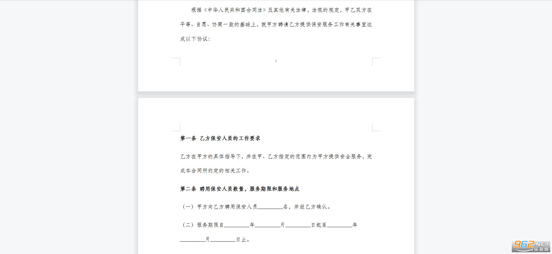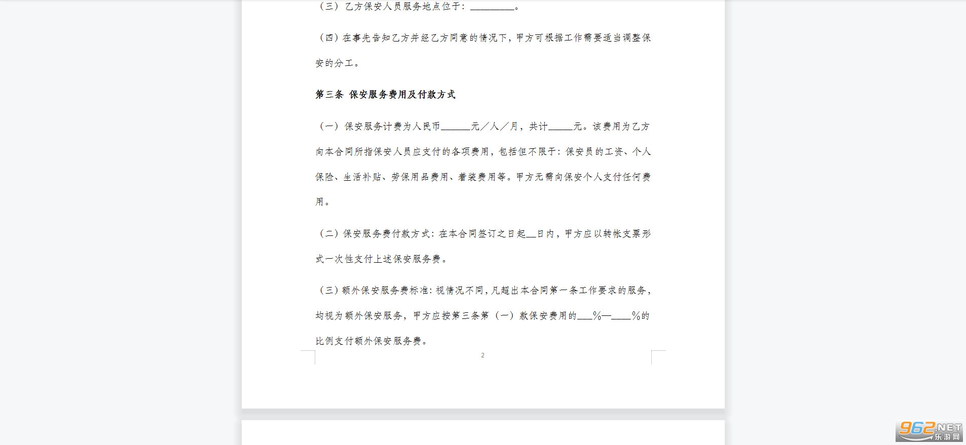 1.甲方为保安人员提供必要的工作,生活条件,且包括食宿。