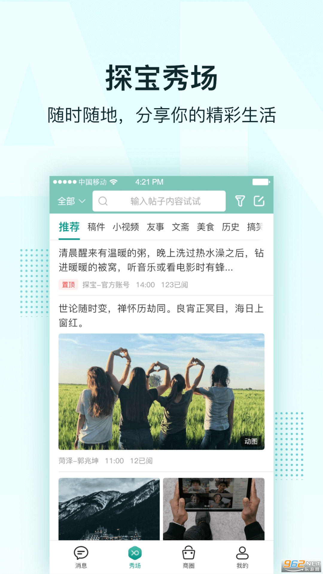 探宝是一款热门生活聊天社区。新一代的聊天论坛,即时下拉刷新的聊天软件,界面干净整洁。无需注册可用第三方直接登录,感兴趣的不要错过。能与相同兴趣的爱好者一起畅聊,同时也能轻松交到志同道合的朋友,告别尬聊。