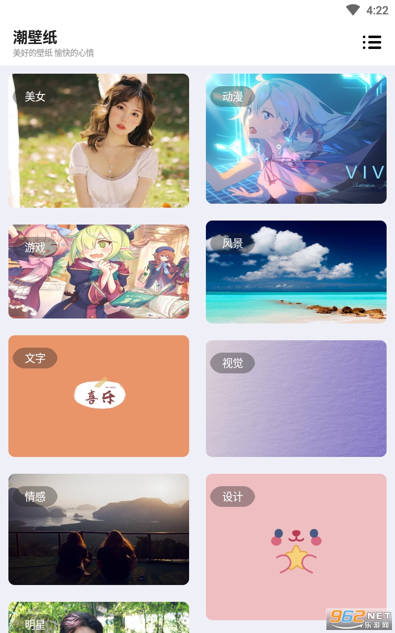 潮壁纸是一个可以让用户们轻松获得更多高清壁纸资源的壁纸软件,这里有着各种不同风格的壁纸,多样的分类,让你可以轻松找到自己想要的壁纸,不管是卡通动漫、唯美风景还是新潮美女这里都有,用户可以将自己的手机桌面打造成最独一无二的样子。