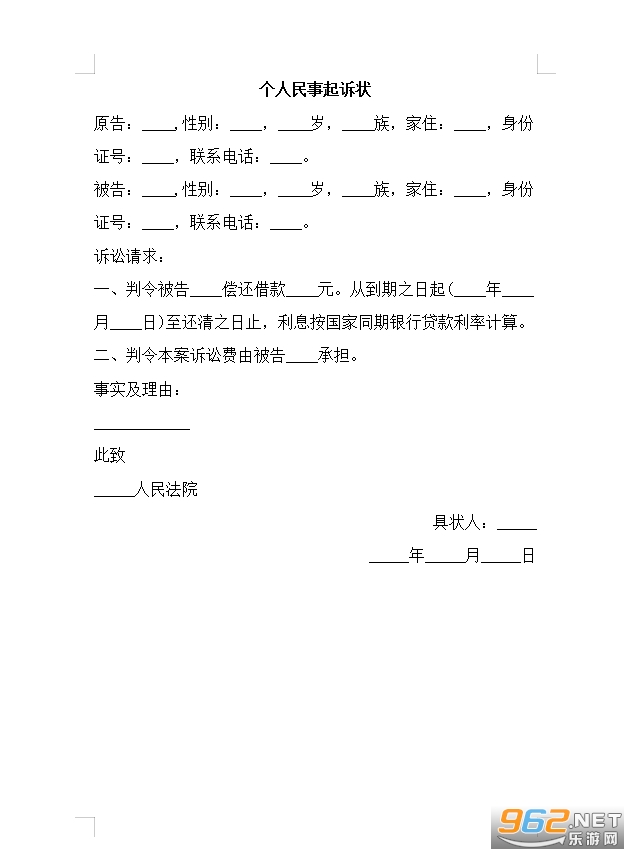 个人民事起诉状是个人在维护自己的合法权益或者与他人发生争议需要向人民法院请求依法判决的法律文书,需要有原告,明确的被告,诉讼请求,事实理由,诉讼状的内容还需要包括双方当事人的基本信息,证据和证据来源等等,小编为大家整理了几份个人民事起诉状范文,需要就来这里吧!
