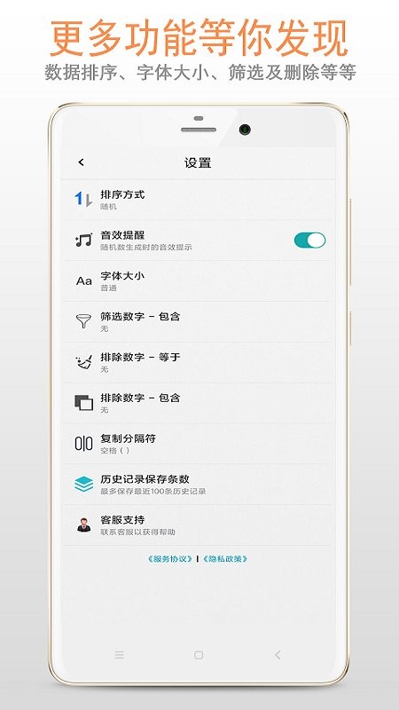 其他特色功能:文字大小、复制分隔符设置、音效设置、筛选与排除功能、数据历史记录等