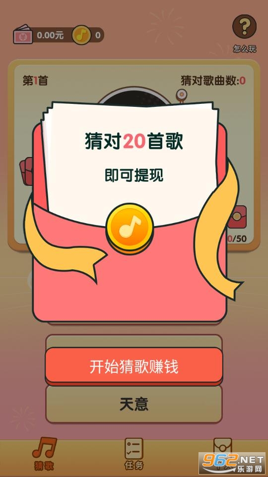 一款给力的手机赚钱小游戏,玩家通过猜歌听歌的游戏方式来赚红包,正确率越高奖励越好,赚钱容易,喜欢就来试试吧!