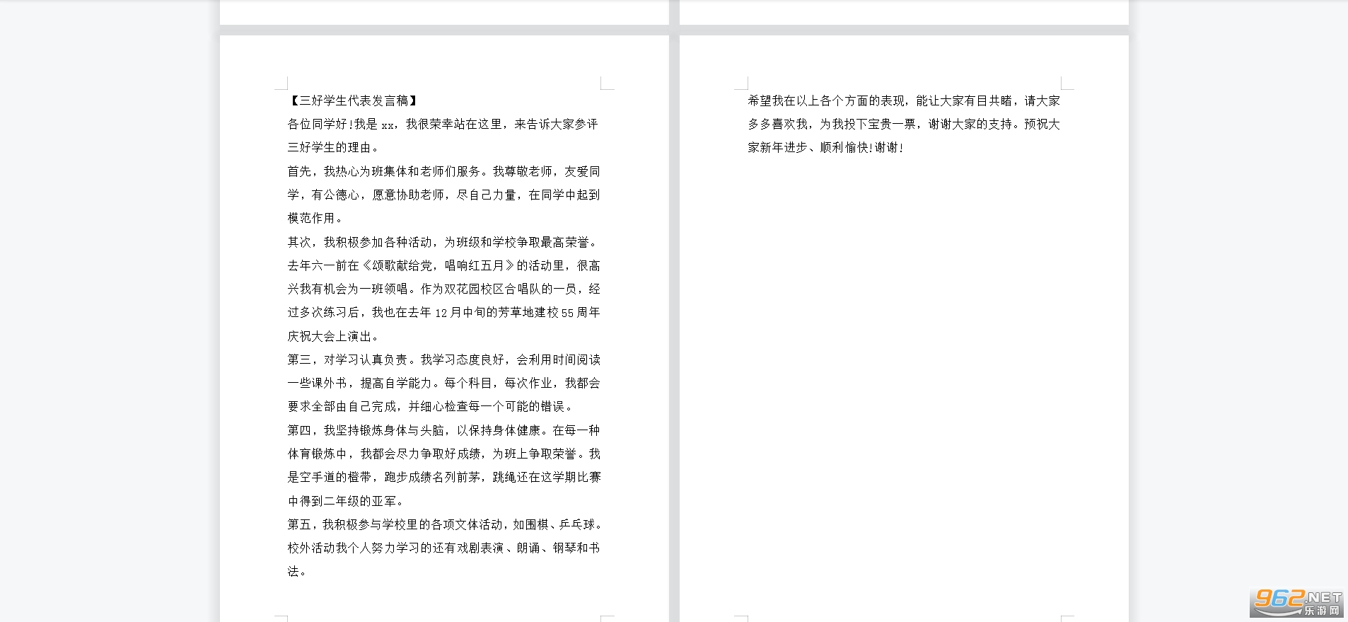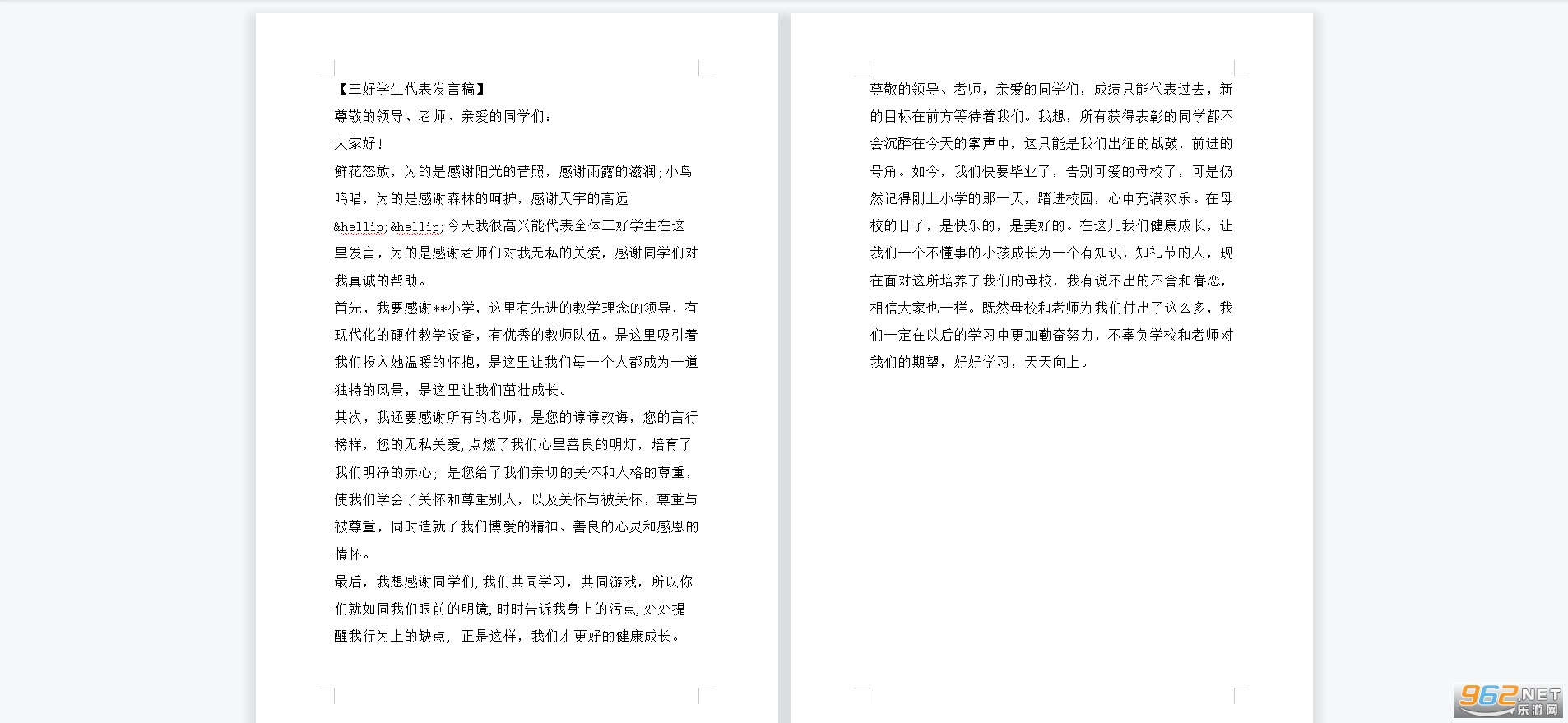 鲜花怒放,为的是感谢阳光的普照,感谢雨露的滋润;小鸟鸣唱,为的是感谢森林的呵护,感谢天宇的高远……今天我很高兴能代表全体三好学生在这里发言,为的是感谢老师们对我无私的关爱,感谢同学们对我真诚的帮助。