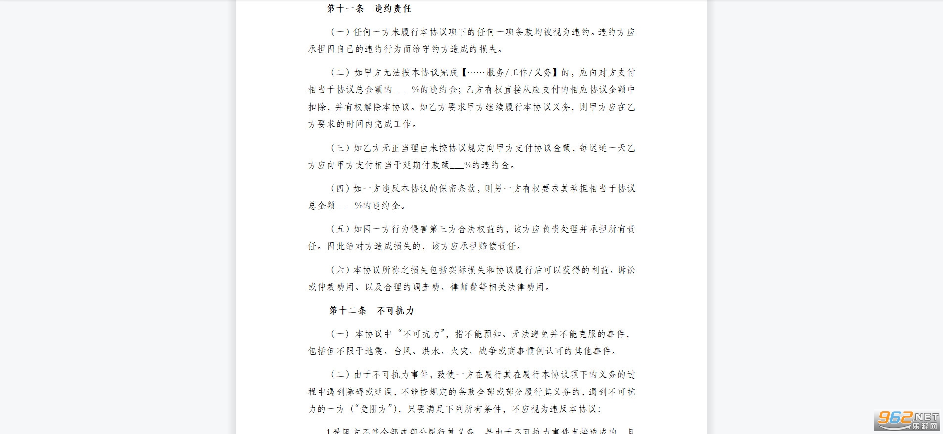 第十二条 不可抗力