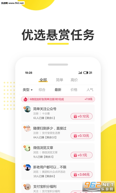 2、超多的悬赏任务可以查看,任务完成的越多那么赚钱也会越轻松;