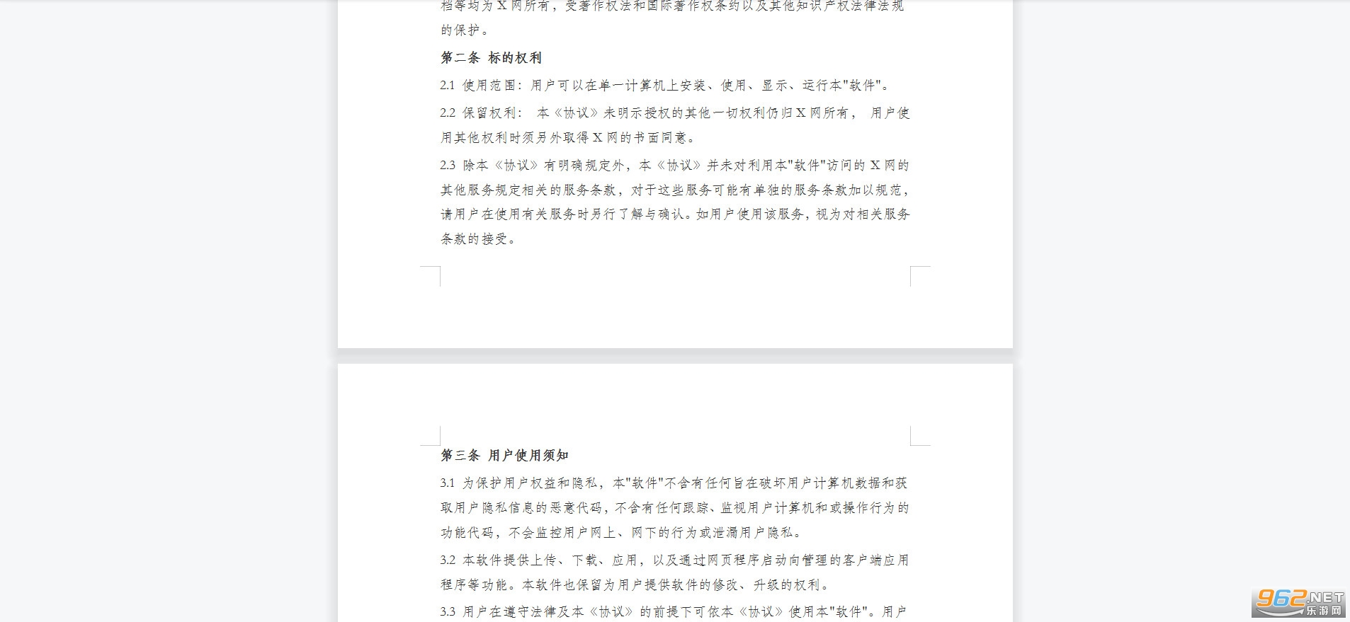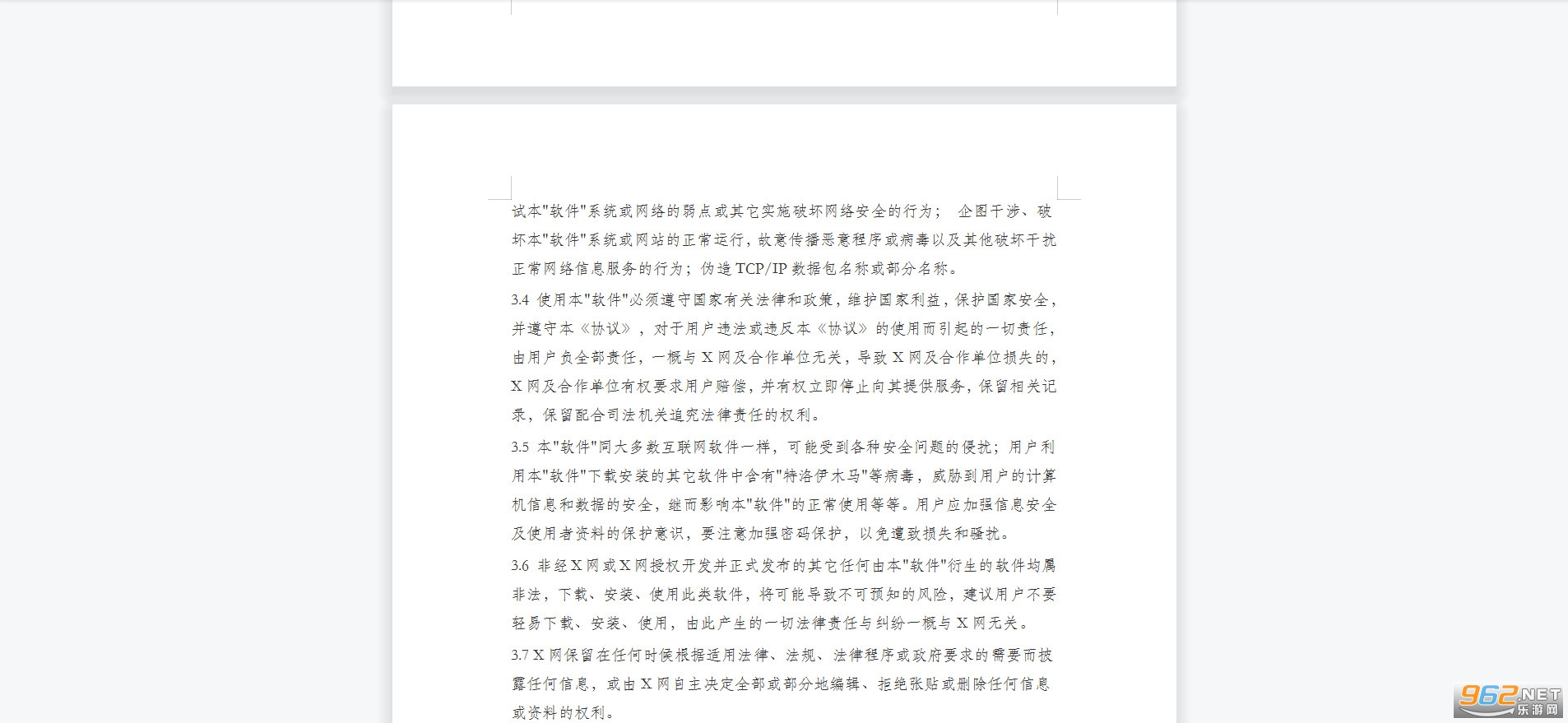 3.6 非经X网或X网授权开发并正式发布的其它任何由本"软件"衍生的软件均属非法,下载、安装、使用此类软件,将可能导致不可预知的风险,建议用户不要轻易下载、安装、使用,由此产生的一切法律责任与纠纷一概与X网无关。