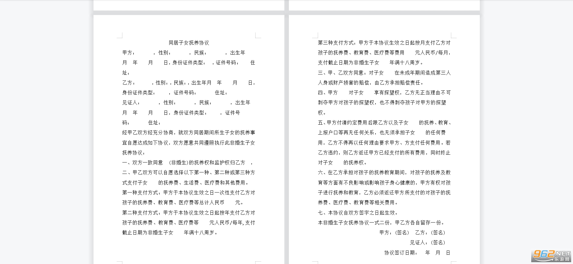 本非婚生子女抚养协议一式二份,甲乙方各自留存一份。