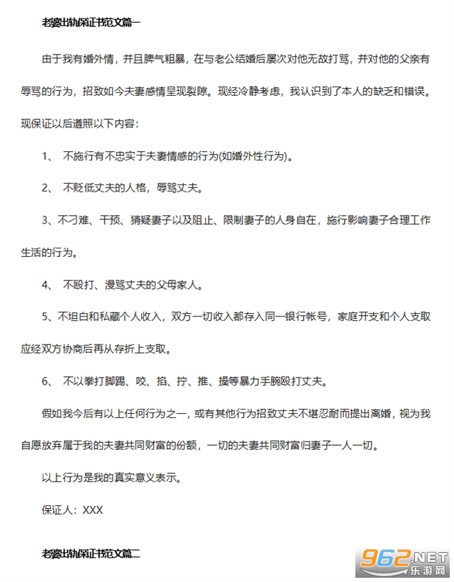 老婆出轨保证书范文篇三