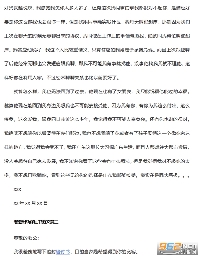 《老婆出轨保证书》为大家带来3份比较详细的老婆出轨保证书模板范文。大家可以根据自己的实际情况进行选择并且修改完善,不建议完全抄袭。直接下载压缩包进行解压就可以得到文档了哦!